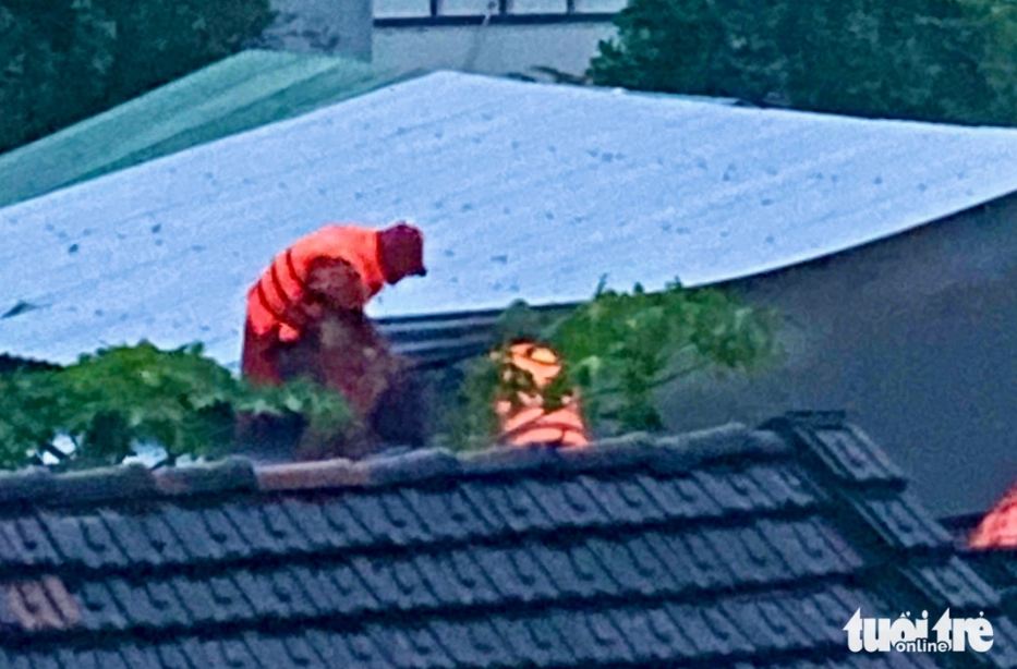Nhiều hộ dân trèo lên mái nhà cầu cứu. (Ảnh: báo Tuổi trẻ)