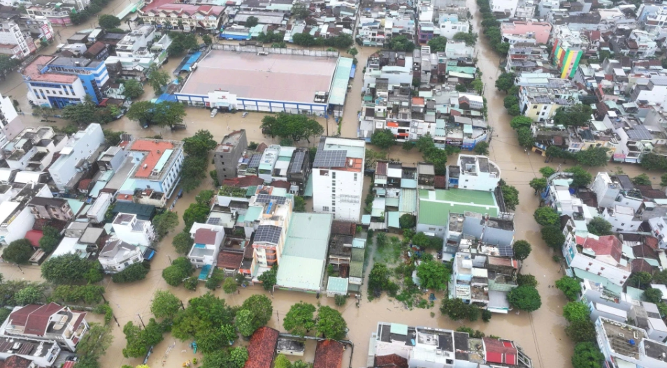 Nhiều khu vực tỉnh Phú Yên cũ ngập sâu, gây thiệt hại lớn về tài sản và đe dọa tới sự an toàn của người dân. (Ảnh: VnExpress/Cao Toàn)
