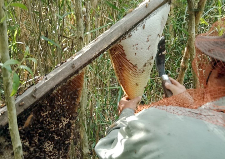 Nông dân vùng U Minh Thượng thu hoạch mật ong rừng. Ảnh: Lê Sen/TTXVN