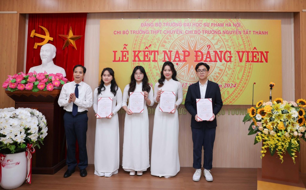 Đúng dịp Kỷ niệm 134 năm Ngày sinh Chủ tịch Hồ Chí Minh (19/5/1890 - 19/5/2024), bốn học sinh ưu tú của trường Nguyễn Tất Thành đã được kết nạp Đảng.