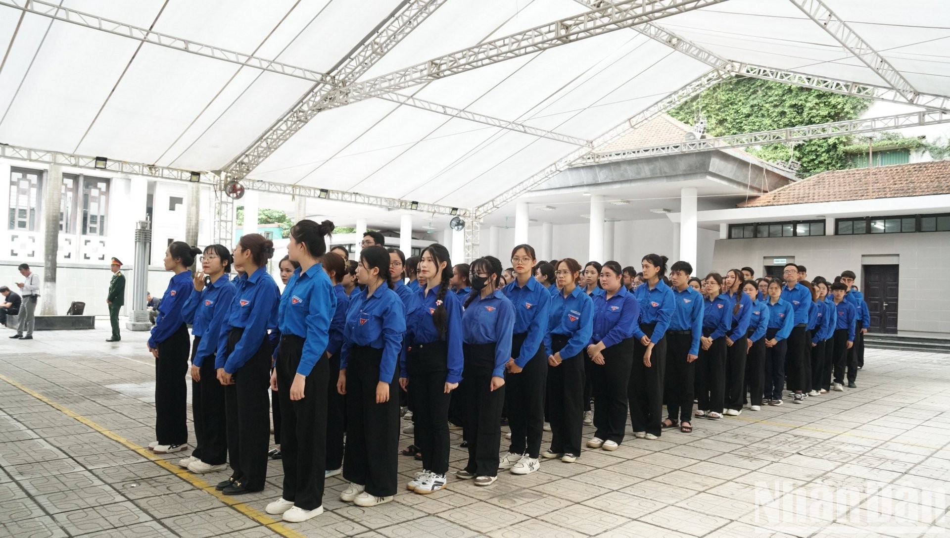 Bạn Vũ Phương Linh và hơn 1.000 thành viên CLB Tình nguyện viên Thủ Đô đã có mặt tại nhà tang lễ số 5 Trần Thánh Tông từ 5 giờ 45 phút sáng. Nhiệm vụ chính của Linh và các bạn là hỗ trợ dọn dẹp, cung cấp nước và hướng dẫn an ninh cho người dân và khách viếng thăm.