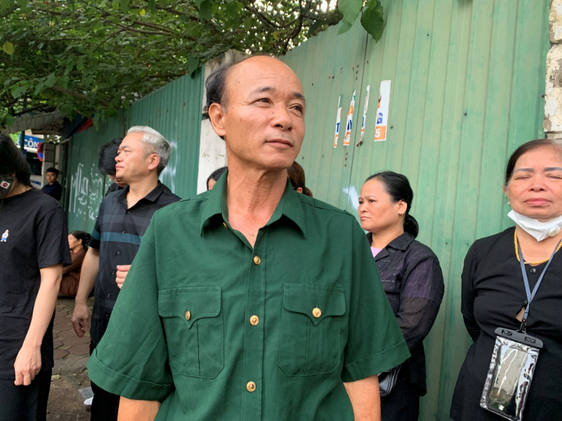 Đứng ở cạnh đó, bác Nguyễn Đình Thi, người cựu chiến binh của Trung đoàn 274, Sư đoàn 377 năm nào cũng không giấu được nỗi bồi bồi, xúc động khi nhắc đến đồng chí Tổng Bí thư. Nhà ở Vĩnh Phúc nên bác Nguyễn Đình Thi và các đồng đội, cựu chiến binh ở quê nhà đã thuê xe ô tô đi từ sớm để lên cho kịp, chờ được vào viếng đồng chí Tổng Bí thư.