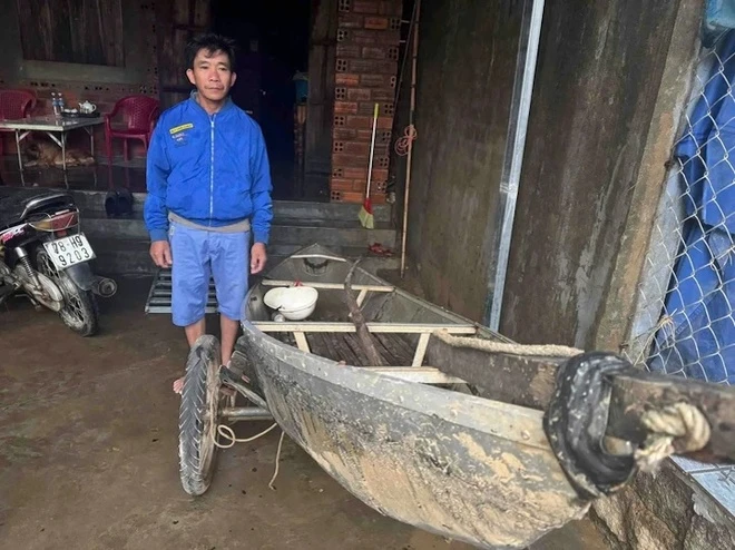 Trong tiếng ầm ầm của dòng lũ, anh Thành cùng vợ mới kịp bế đứa con nhỏ trèo lên gác gỗ. Khi đã đưa vợ con đến nơi an toàn, anh không hề ngần ngại, lập tức quay xuống, dắt chiếc ghe mà anh nuôi để đánh cá cuối tuần, rồi lao mình vào mưa lũ.