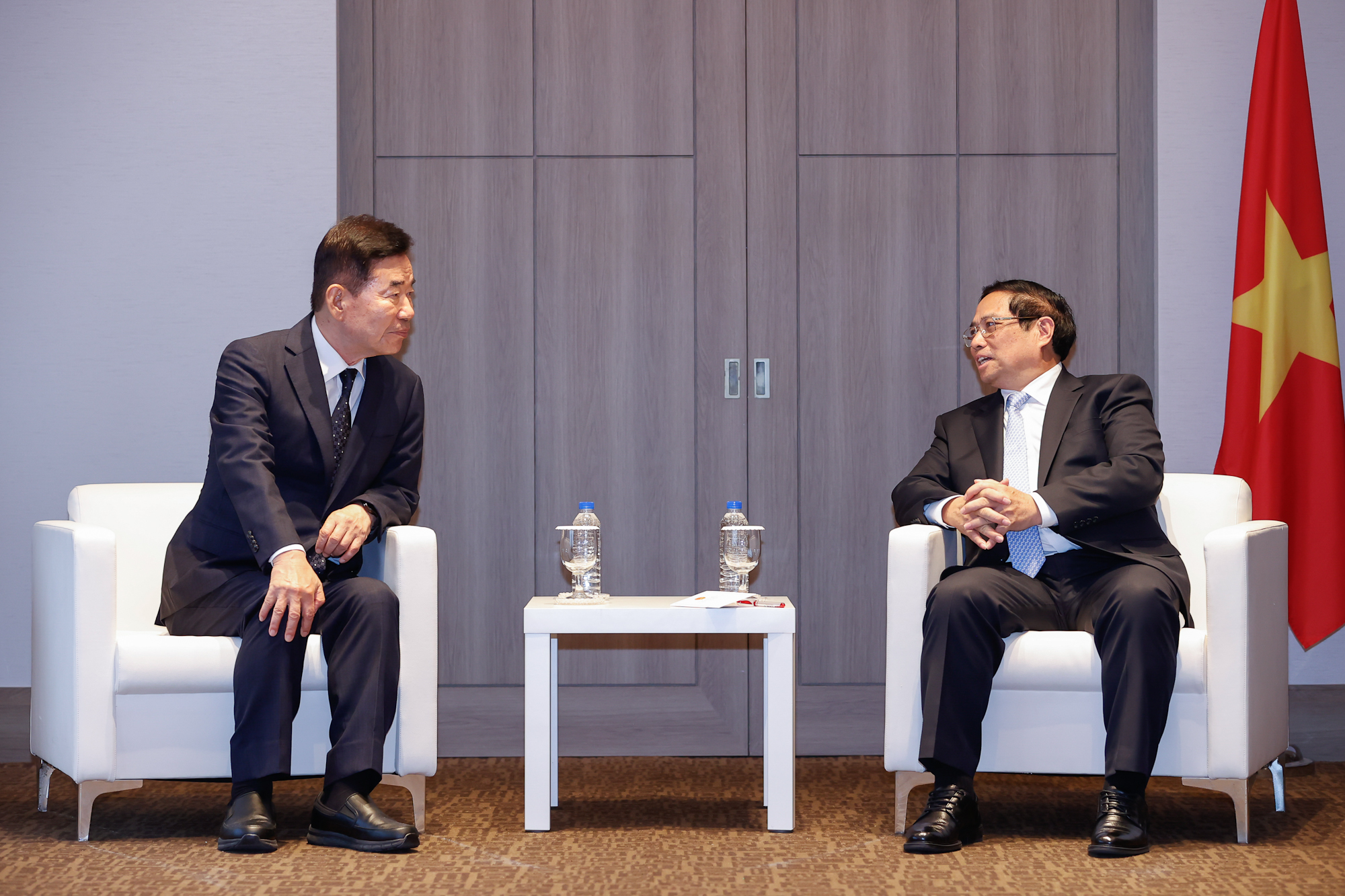 Tại cuộc tiếp, Thủ tướng Phạm Minh Chính bày tỏ trân trọng, cảm ơn những tình cảm dành cho Việt Nam và đóng góp quan trọng của ông Kim Jin Pyo cho quan hệ hai nước trên các cương vị công tác, đặc biệt là quan hệ giữa cơ quan lập pháp hai nước;