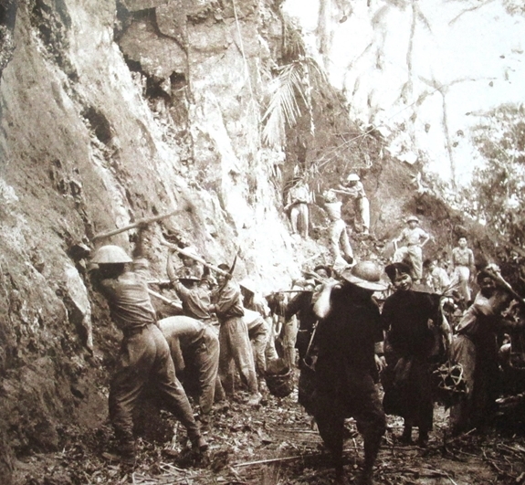 Bộ đội và dân công mở đường từ Tuần Giáo vào Điện Biên Phủ. Ảnh tư liệu