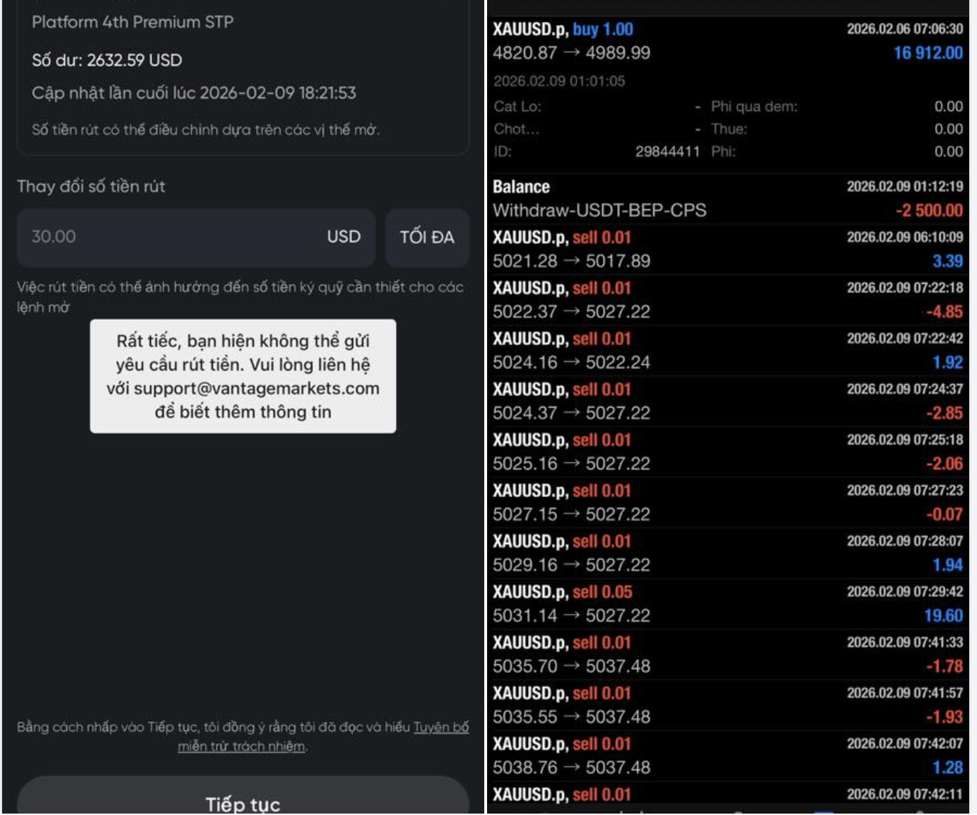 Một nhà đầu tư phản ánh gặp khó khăn trong việc rút tiền từ Vantage Market về tài khoản