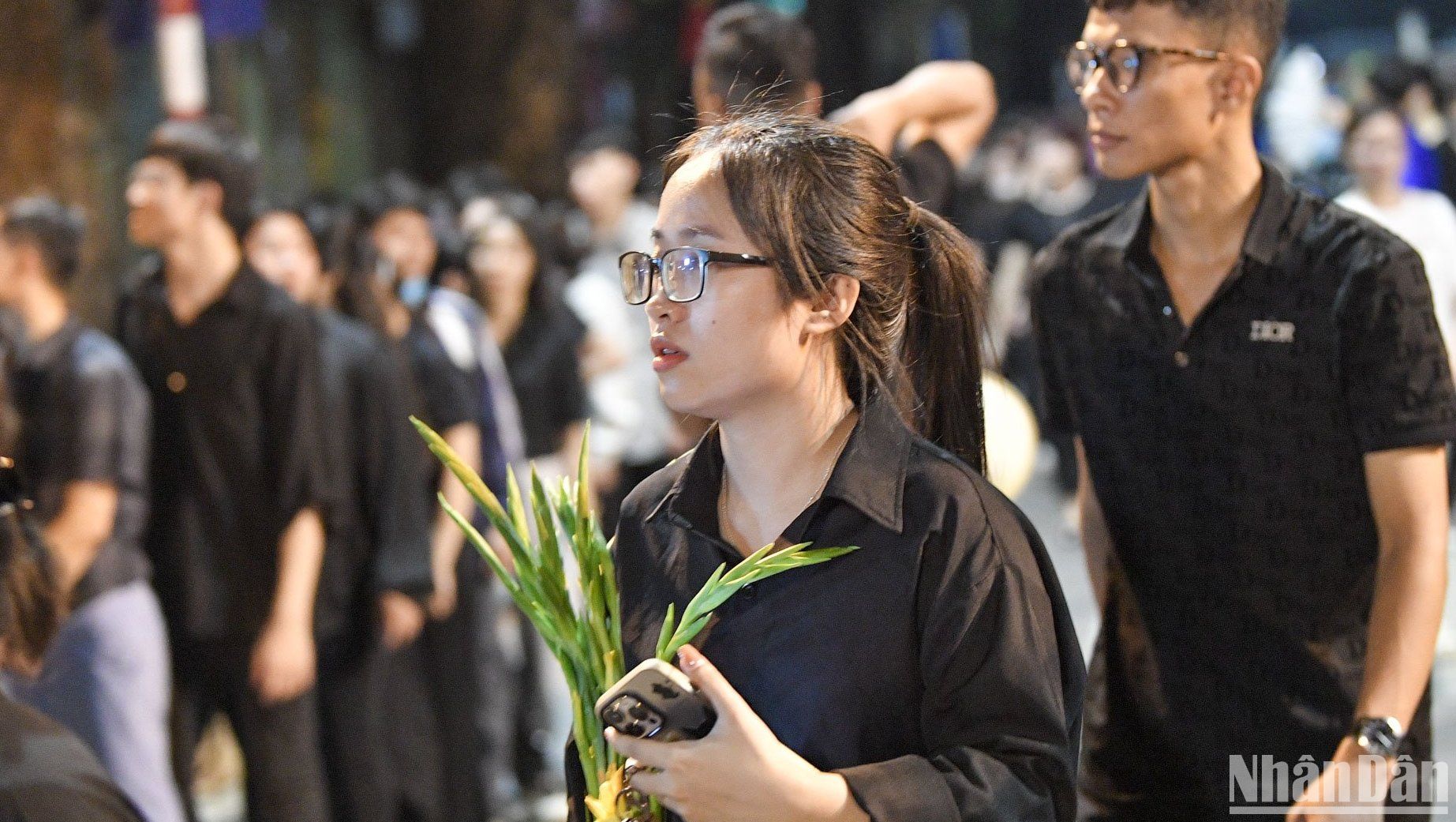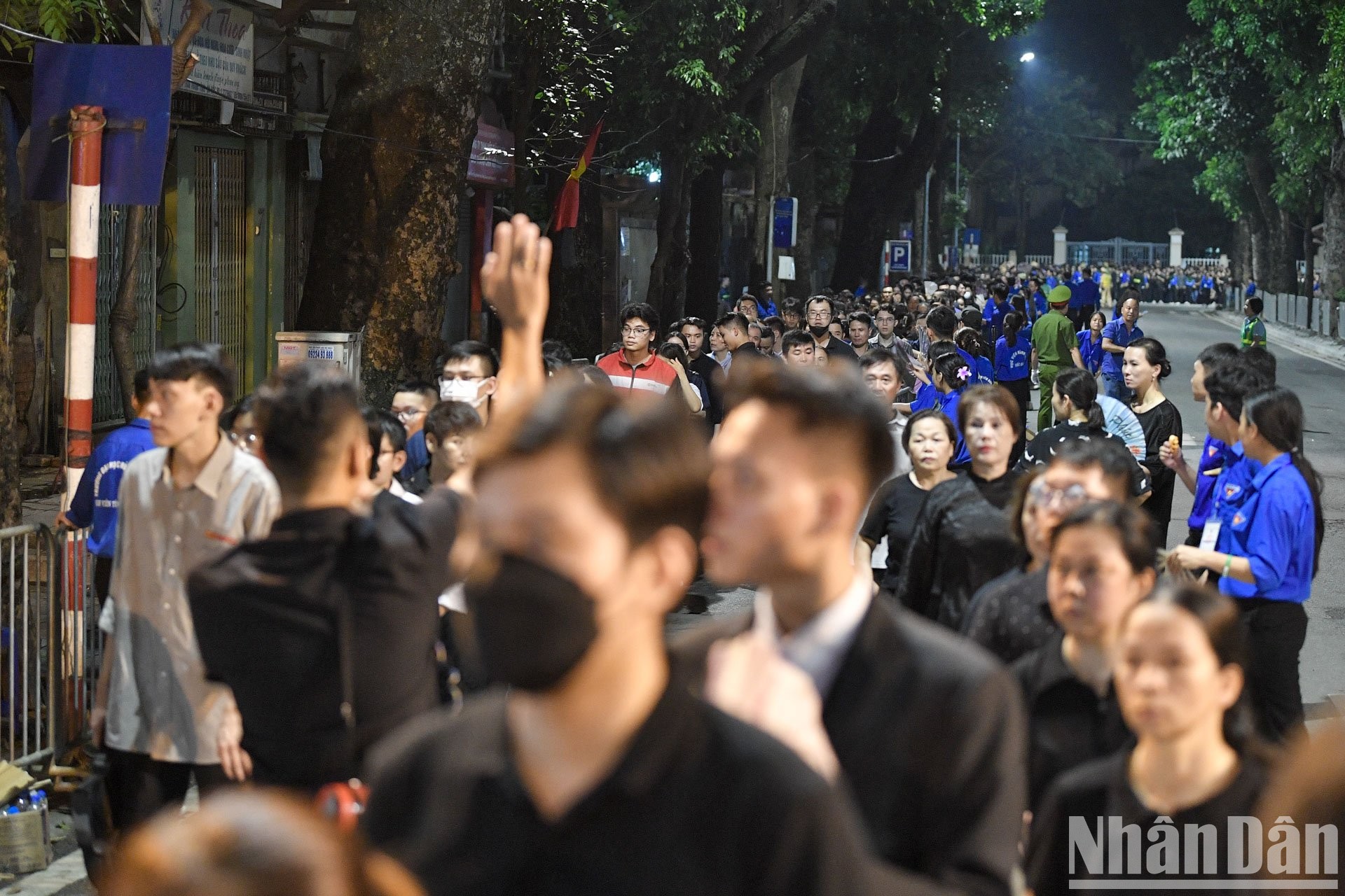 Tối muộn ngày 25/7, nhiều người dân vẫn xếp hàng dài bên ngoài Nhà tang lễ quốc gia, chờ viếng Tổng Bí thư Nguyễn Phú Trọng.