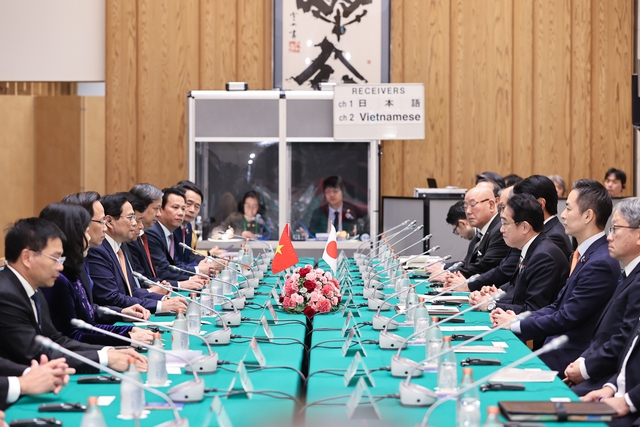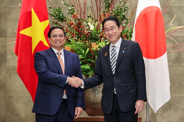 Tại hội đàm, Thủ tướng Chính phủ Phạm Minh Chính hoan nghênh việc Nhật Bản tổ chức Hội nghị cấp cao kỷ niệm ASEAN-Nhật Bản vào dịp kỷ niệm 50 năm quan hệ ASEAN -Nhật Bản. Thủ tướng Kishida Fumio cảm ơn sự tham dự của Thủ tướng Chính phủ Phạm Minh Chính và bày tỏ tin tưởng sự tham gia, đóng góp tích cực của đoàn Việt Nam sẽ góp phần quan trọng vào thành công chung của Hội nghị.
