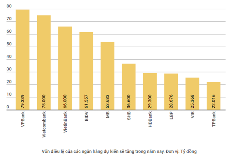 Nhiều ngân hàng tăng vốn nhờ chia cổ tức hậu hĩnh