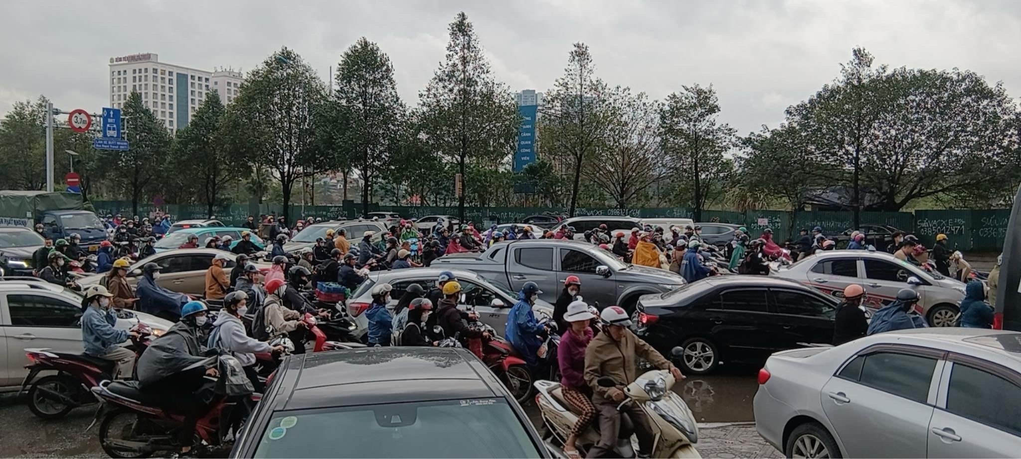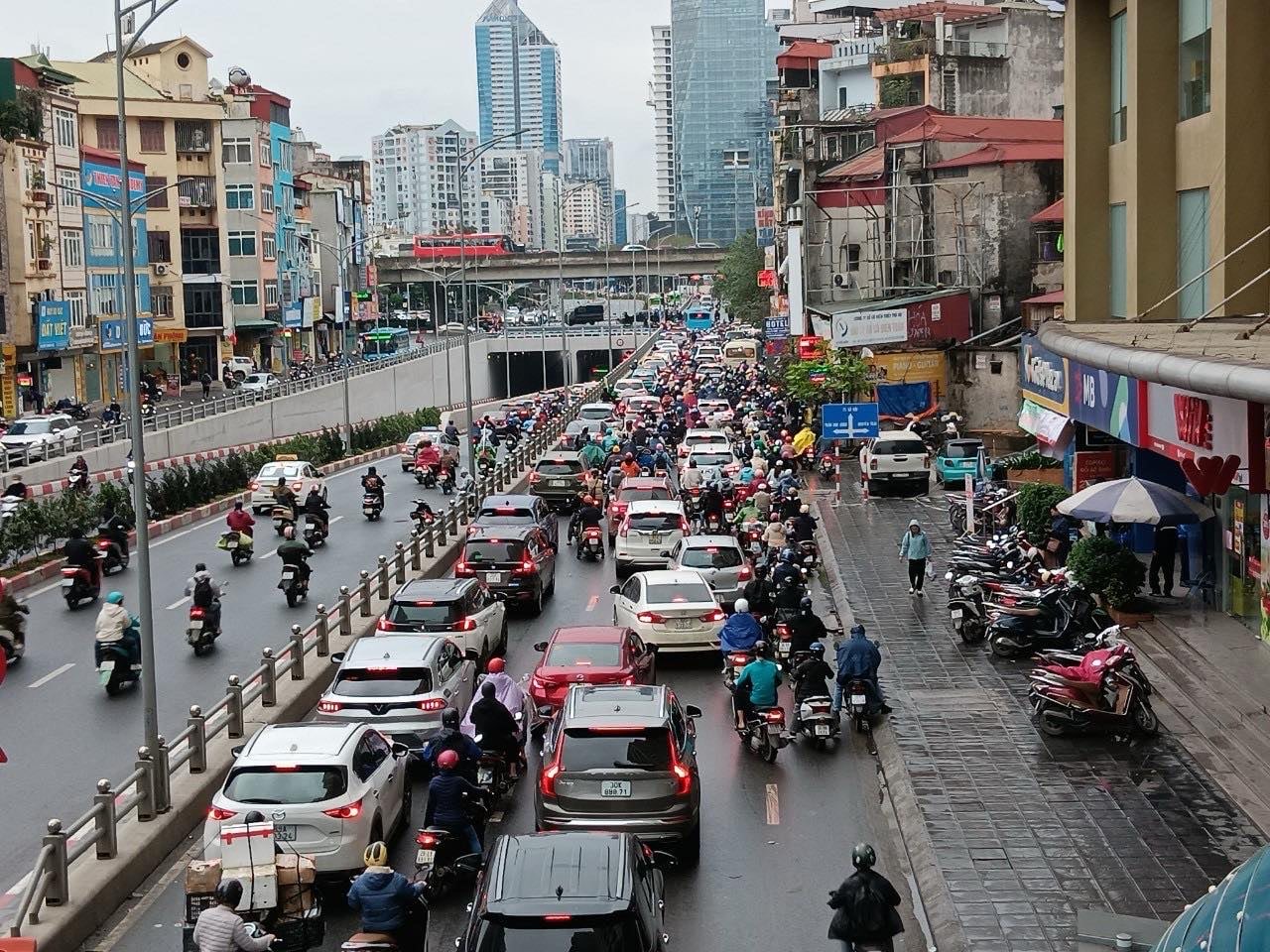 Cơn mưa lớn trước khung giờ cao điểm khiến giao thông nội đô trở nên ùn ứ.