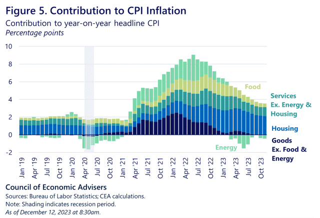 Theo các chuyên gia, bảng cân đối kế toán hộ gia đình lành mạnh và thị trường lao động mạnh mẽ đã tạo động lực thúc đẩy chi tiêu tiêu dùng của Hoa Kỳ, tiếp tục tăng với tốc độ gần với mức trung bình như các lần tăng trưởng trước đó. Thị trường việc làm tăng trưởng ổn định, tỷ lệ thất nghiệp thấpMức tăng trưởng việc làm của Mỹ tiếp tục đạt tốc độ rất mạnh vào năm 2023, mặc dù đã giảm so với năm 2021 và 2022 ngay sau cuộc suy thoái do đại dịch. Việc làm phi nông nghiệp hàng tháng tăng thêm trung bình 232.000 công việc trong năm 2023. Kết quả, tổng số việc làm đạt được dưới thời chính quyền Joe Biden là 14,1 triệu cho đến tháng 11 năm nay.Cùng với đó, tiền lương đã tăng đều đặn. Thu nhập trung bình theo giờ của người lao động khu vực tư nhân tính đến tháng 11 đã tăng 4% so với một năm trước đó. Những người lao động có thu nhập thấp đã có thu nhập tốt hơn khi phần lớn việc làm tăng trưởng vào năm 2023 đến từ các ngành như giải trí và khách sạn, nơi mức lương ban đầu có xu hướng thấp hơn.Báo cáo hàng tháng của LinkedIn về thị trường lao động trong tháng 11 cho thấy “sự cải thiện” trong việc tuyển dụng sau khi đình trệ hồi đầu năm và cho biết “thị trường việc làm vẫn kiên cường và mạnh mẽ hơn mong đợi một cách đáng ngạc nhiên”.Tỷ lệ thất nghiệp kết thúc năm ở mức 3,7% so với bắt đầu ở mức 3,4%. Cả hai đều rất thấp so với mức tiêu chuẩn lịch sử. Các nhà kinh tế kỳ vọng tỷ lệ thất nghiệp có thể đạt khoảng 4%- con số đầy thách thức vào năm 2024,. Tỷ lệ thất nghiệp và lạm phát ở Mỹ giảm. Nguồn: Cục Thống kê Lao động Mỹ/ Quốc hội Mỹ Đầu tư sản xuất đạt mức cao kỷ lụcChi tiêu xây dựng sản xuất thực tế đã tăng gấp đôi kể từ cuối năm 2021. Trong Quý 3 năm 2023, đầu tư xây dựng sản xuất tư nhân thực tế (đã điều chỉnh theo lạm phát) đạt mức cao nhất kỷ lục kể từ năm 1958. Tương tự, xây dựng sản xuất đóng góp nhiều nhất vào mức tăng trưởng GDP thực tế so với cùng kỳ năm trước.Sự gia tăng này xuất phát từ môi trường chính sách hỗ trợ cho xây dựng, sản xuất: Đạo luật Việc làm và Đầu tư Cơ sở hạ tầng (IIJA), Đạo luật Giảm lạm phát (IRA) và Đạo luật CHIPS cung cấp nguồn vốn trực tiếp và ưu đãi thuế cho xây dựng công cộng và tư nhân.Theo dữ liệu của chính phủ Mỹ, sự bùng nổ chủ yếu đến từ ngành sản xuất máy tính, điện tử và điện. Đáng nói đây là những ngành chiếm tỷ trọng tương đối nhỏ trong xây dựng, sản xuất vài thập kỷ qua, nhưng hiện nay đã chiếm ưu thế nhờ các chính sách của chính phủ.Lạm phát giảm tốc Sau khi đạt đỉnh điểm vào mùa hè năm 2022, lạm phát đã có xu hướng giảm trong một năm rưỡi nhờ lạm phát lương thực, năng lượng và hàng hóa giảm bớt. Lạm phát trong lĩnh vực dịch vụ – vốn phụ thuộc nhiều vào tiền lương đã giảm tốc chậm hơn và theo đúng lộ trình với lạm phát tiền lương được điều tiết dần dần. Trong khi đó, dữ liệu thị trường về hợp đồng thuê mới cho thấy áp lực giá nhà đất sẽ tiếp tục giảm bớt. Lạm phát giảm tốc thúc đẩy sức mua người tiêu dùng Mỹ. Nguồn: Quốc hội Mỹ Mặc dù lạm phát vẫn chưa về mức mục tiêu 2% của FED, nhưng lạm phát giảm mạnh đã giúp tâm lý tiêu dùng của người lao động phấn chấn hơn. Năm 2023 chứng kiến sự phục hồi niềm tin của người tiêu dùng. Khảo sát về tâm lý người tiêu dùng của Đại học Michigan cho thấy chỉ số này đã tăng từ 10-20 điểm phần trăm trong năm nay – một chỉ dấu theo truyền thống gắn liền với tăng trưởng kinh tế mạnh mẽ.Tổng quan lại, dù vẫn phải tiếp tục nỗ lực hơn nữa trong cuộc chiến chống lạm phát cũng như tìm lối ra cho các ngành công nghiệp trọng yếu của quốc gia (như bán dẫn) thoát khỏi sự lệ thuộc vào Trung Quốc, nhưng việc tăng trưởng kinh tế vượt dự báo sau 1 năm đã là một thành công lớn của chính quyền Tổng thống Joe Biden.