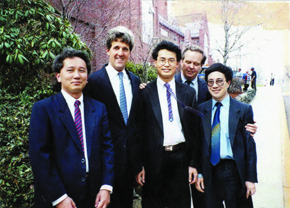 Phó Thủ tướng Phạm Bình Minh, ông Thomas Vallely, đại sứ Việt Nam tại Geneva Nguyễn Trung Thành, thượng nghị sĩ John Kerry và giám đốc Sở Ngoại vụ TP.HCM Nguyễn Vũ Tú (các quan chức Việt Nam lúc đó đều là sinh viên tại ĐH Tufts ở Boston) tại một hội thảo về gỡ bỏ cấm vận năm 1993 ở Boston (Mỹ)