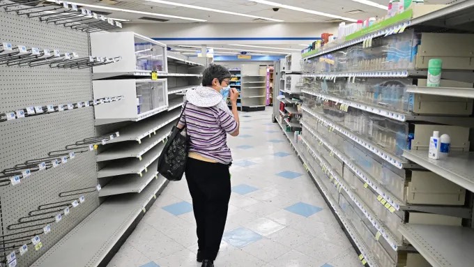 Vị khách xem qua những mặt hàng còn sót lại trên các kệ trống tại cửa hàng Rite Aid ở Alhambra, California, ngày 18/10/2023. Ảnh: CNN