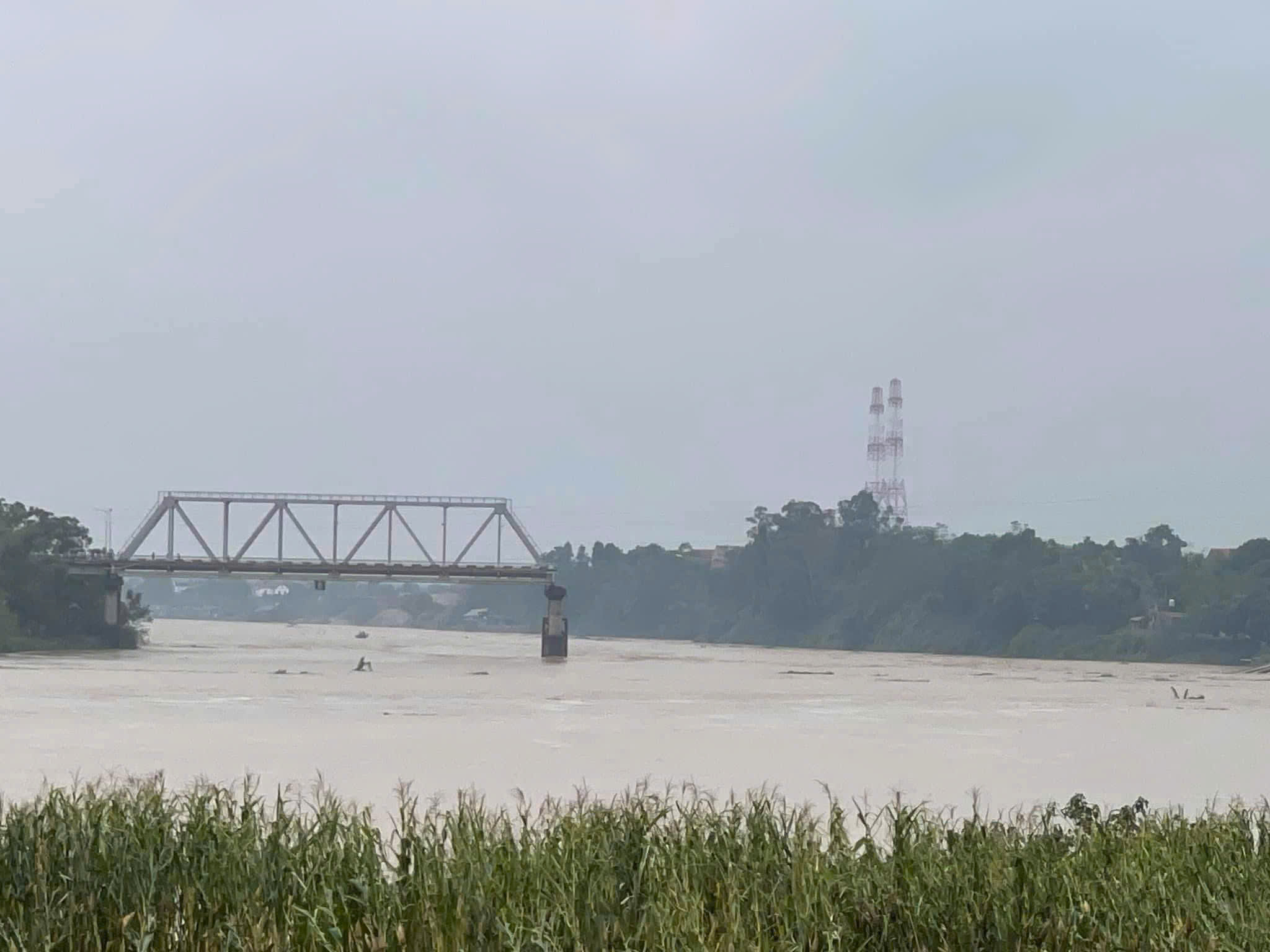 Cầu Phong Châu bắc qua sông Hồng nối hai huyện lâm Thao và Tam Nông thuộc tỉnh Phú Thọ đã bị sập (hình ảnh do người dân cung cấp)