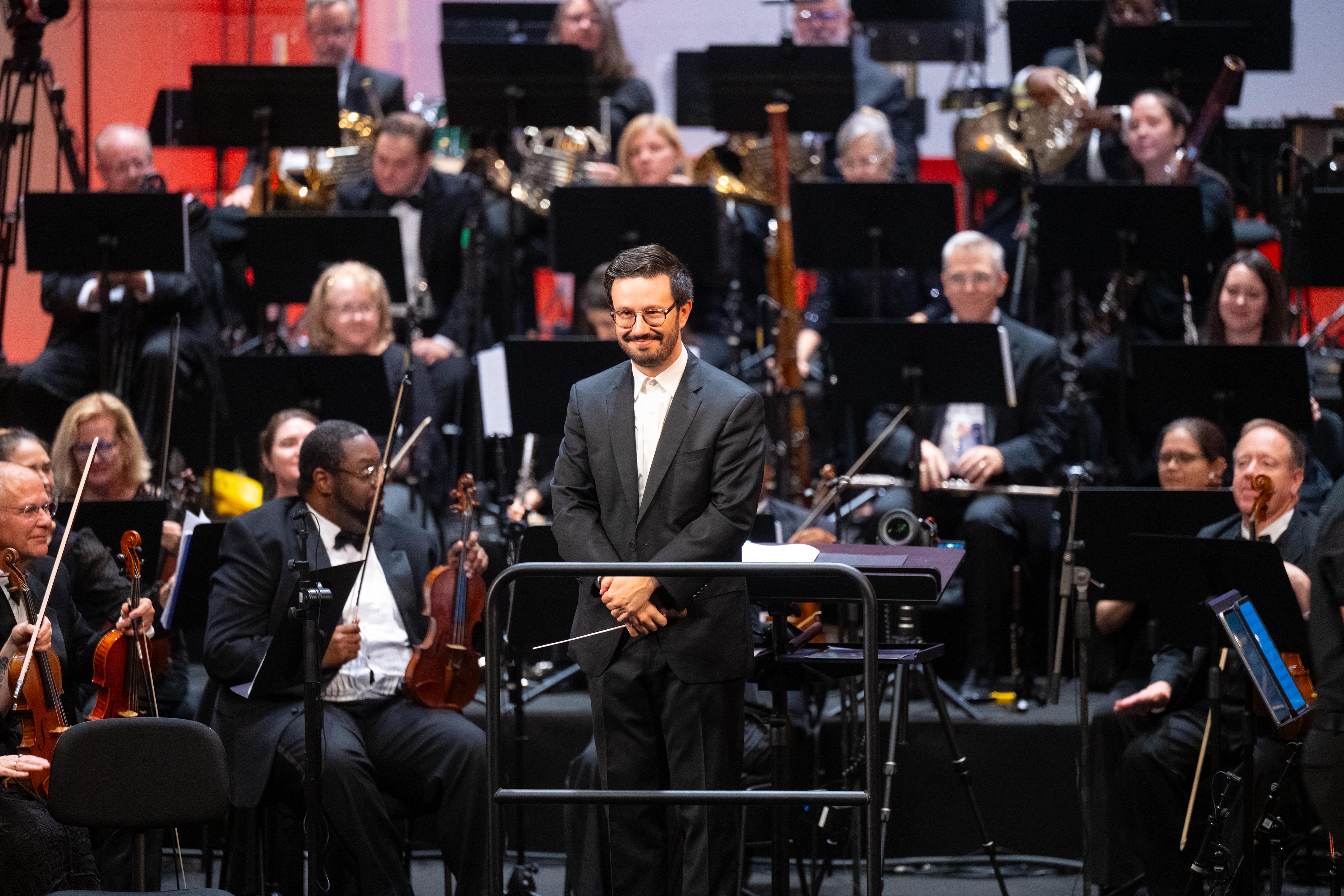 Nhạc trưởng Austin Chanu quay lại chào khán giả, và trong phút ấy, không chỉ là một người chỉ huy mà còn là cầu nối xúc cảm giữa sân khấu và trái tim khán giả.