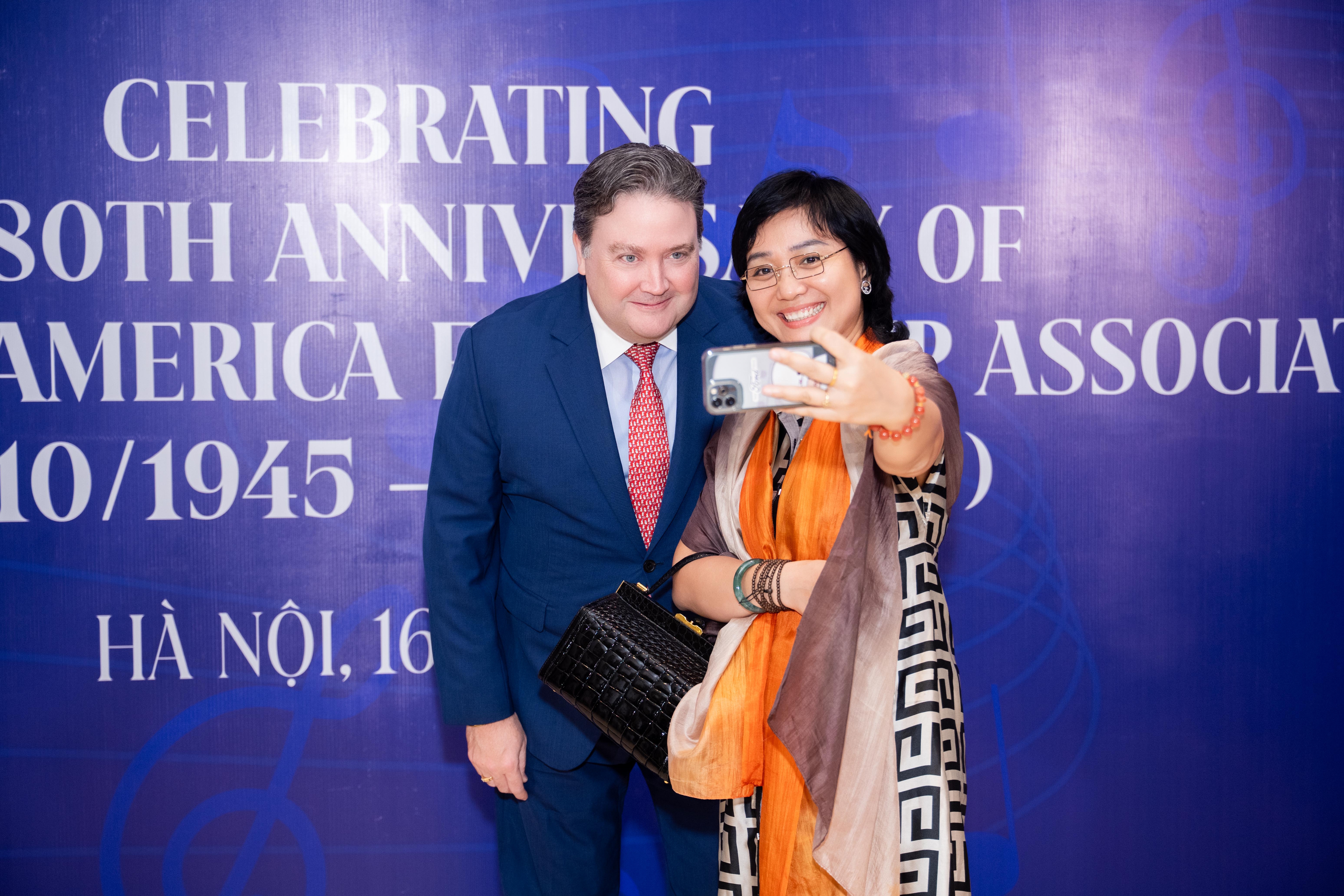 Giữa ánh đèn lung linh của Nhà hát Hồ Gươm, Lễ kỷ niệm 80 năm thành lập Việt – Mỹ thân hữu hội không chỉ là dấu mốc của hành trình tám thập kỷ vun đắp tình hữu nghị, mà còn là khoảnh khắc lắng đọng của âm nhạc, của những cái bắt tay, những nụ cười, và niềm xúc động chân thành.
