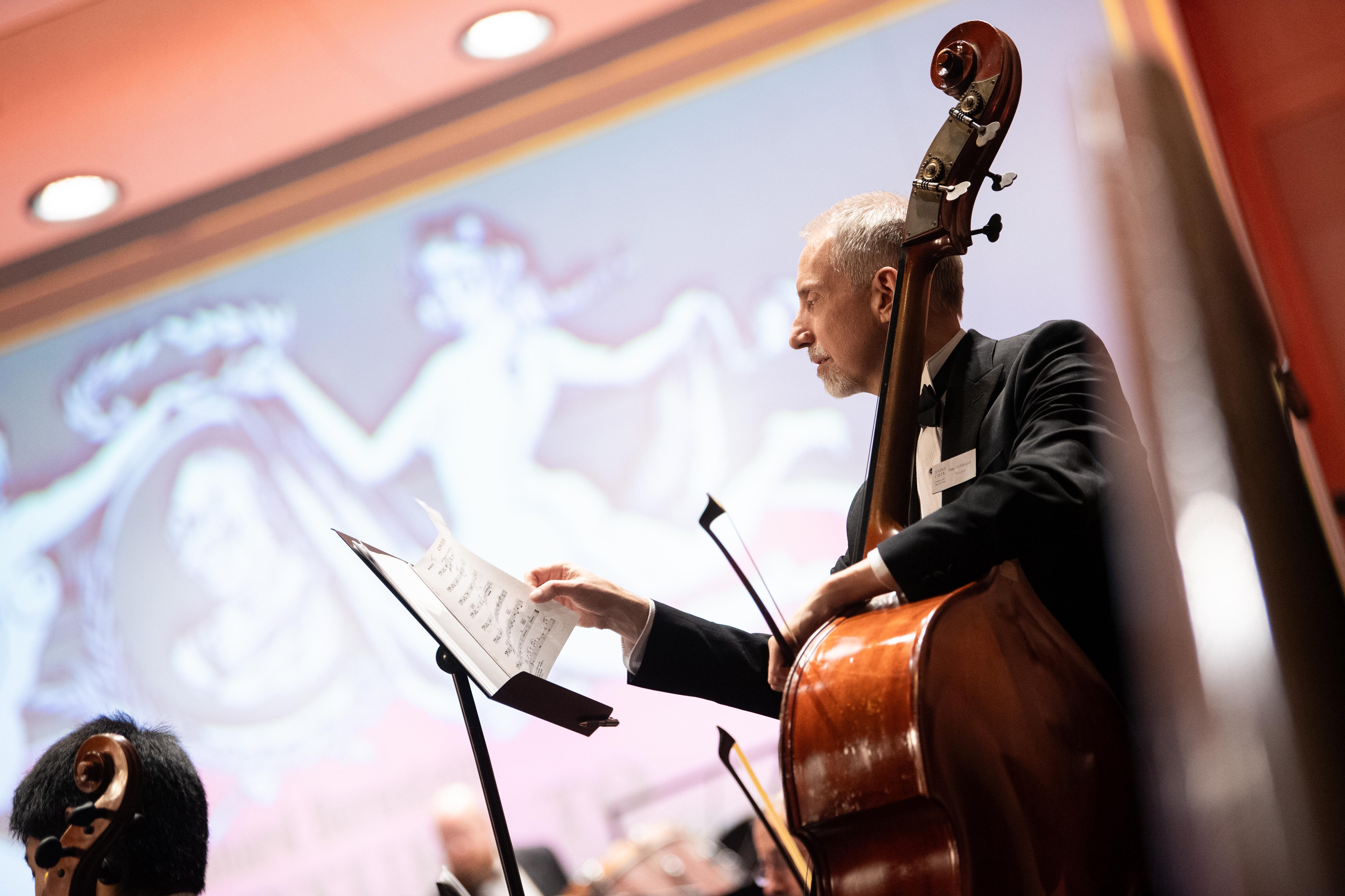 Những tiếng đàn vang lên trầm ấm như mạch ngầm cảm xúc, nâng đỡ từng giai điệu bay bổng của cả dàn nhạc - nơi sức mạnh và sự dịu dàng cùng song hành.