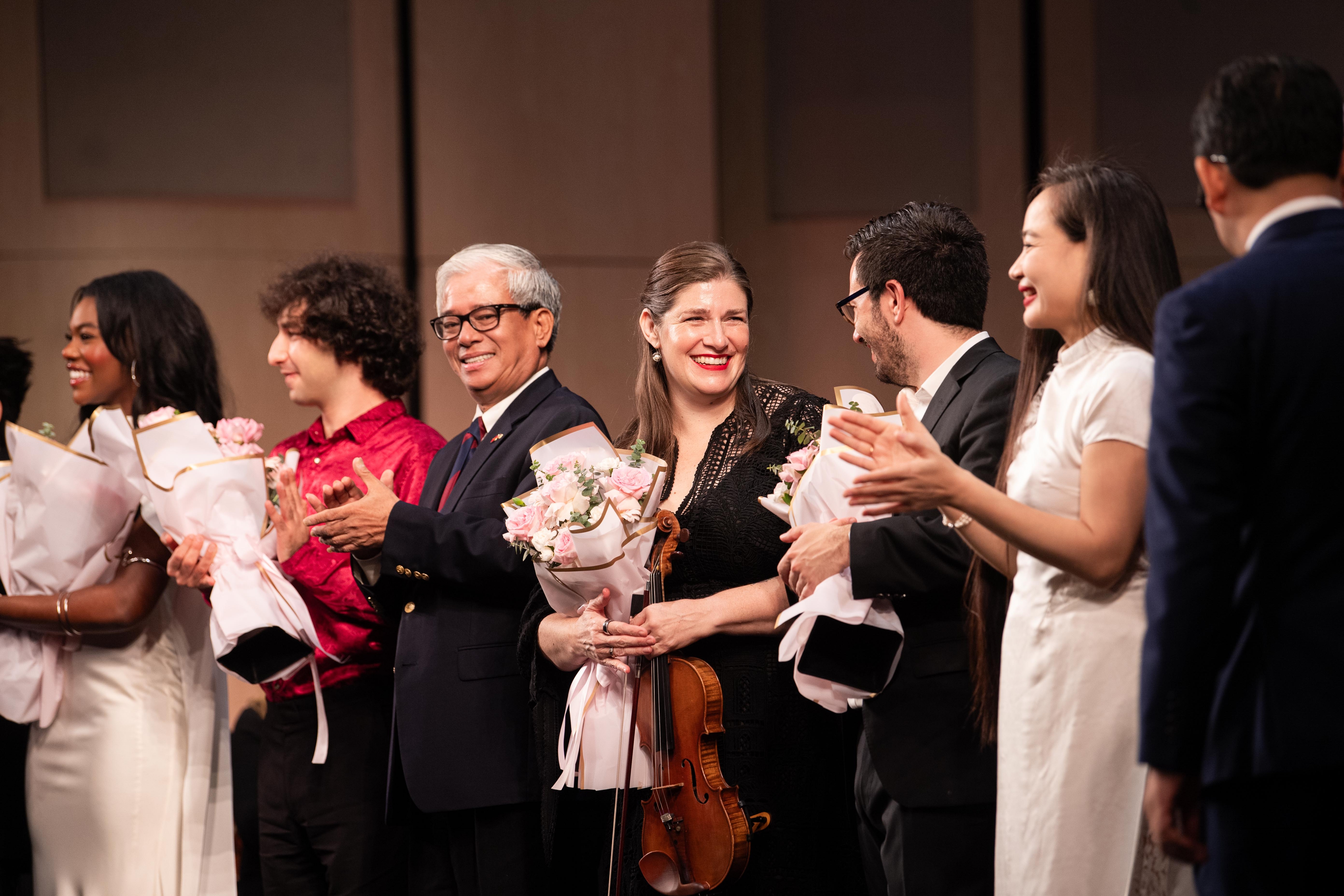 Âm thanh của dàn violin sáng lên như ánh sao đêm Hồ Gươm, vừa trong trẻo vừa mạnh mẽ — tạo nên linh hồn của buổi hòa nhạc kết nối hai bờ đại dương.