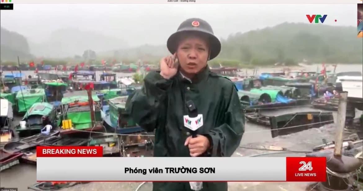 Hình ảnh nữ phóng viên Tùng Thư rất dũng cảm tác nghiệp tại Cô Tô, Quảng Ninh để đưa tin về siêu bão Yagi. Nhiều lần lên hình, nữ phóng viên không đứng vững, bị nước mưa và gió tạt mạnh vào mặt. Nhiều người để lại bình luận: " Biết ơn sâu sắc đến chị, những phóng viên tác nghiệp dũng cảm, yêu nghề hết mình vì nhân dân, mong chị và mọi người đều bình an.","Xin cho phép tôi được ngưỡng mộ gọi chị là "người hùng" quyết tâm vì nhiệm vụ đến quên mình".
