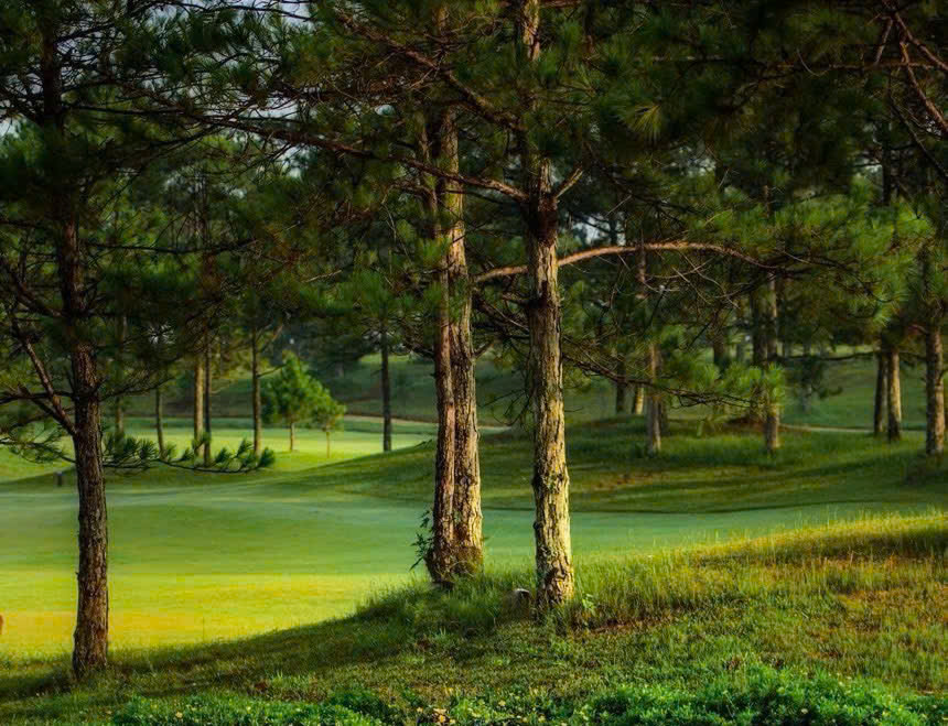 Những cây thông lâu năm trong khuôn viên sân golf Đồi Cù.