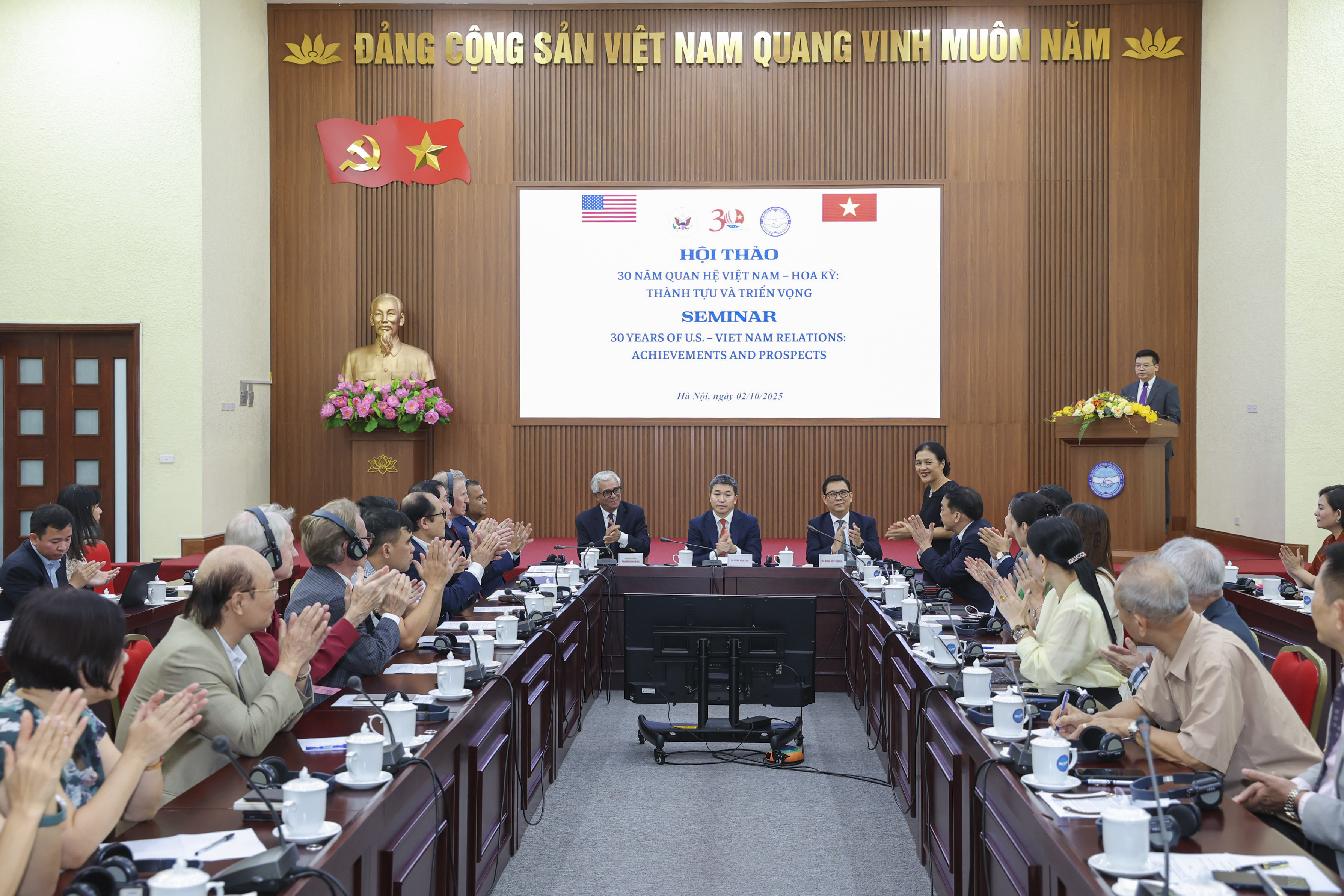 Ngày 2/10 vừa qua tại tòa Hữu Nghị, Liên hiệp các Tổ chức hữu nghị Việt Nam (VUFO) đã cùng phối hợp với Đại sứ quán Hoa Kỳ ở Việt Nam tổ chức Hội thảo với chủ đề: “30 năm quan hệ Việt Nam - Hoa Kỳ: Thành tựu và Triển vọng”. Hội thảo là sự kiện lớn thứ 4 trong chuỗi 6 sự kiện kỷ niệm 30 năm quan hệ giữa 2 nước, nhằm mục đích tạo cơ hội cho các nhà học giả, ngoại giao hay nghiên cứu của Việt Nam và Hoa Kỳ được trực tiếp lắng nghe ý kiến, đưa ra các đánh giá chuyên môn về mối quan hệ giữa 2 quốc gia trong suốt 30 năm qua, đồng thời nhận định tình hình thực tế giữa bối cảnh khu vực và thế giới đang có nhiều biến động để đưa ra những khuyến nghị thúc đẩy quan hệ song phương trong tương lai.