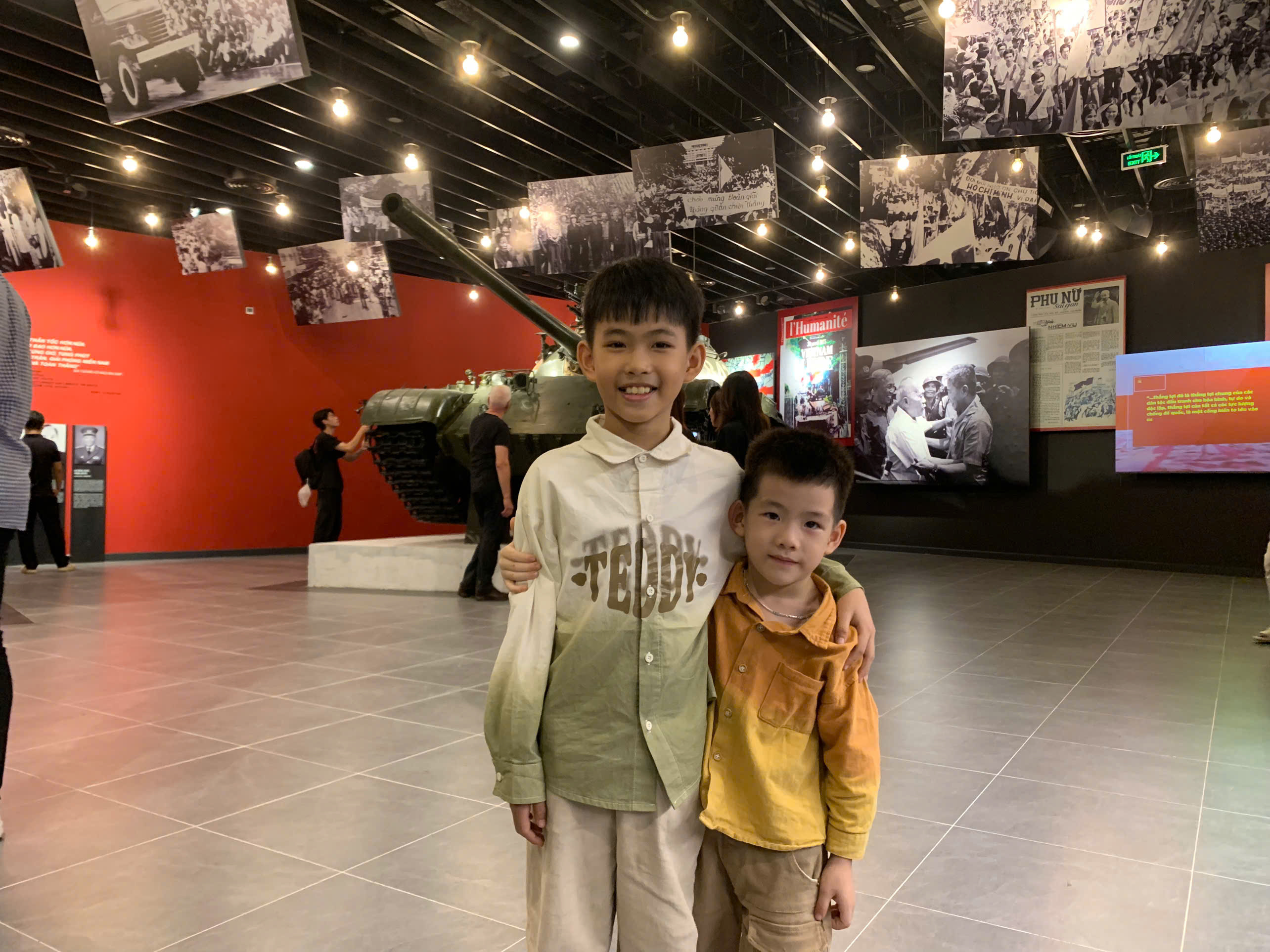 Hai anh em bé Trần Minh Đức hào hứng, mong đợi từ đầu tuần để được mẹ đưa tới tham quan Bảo tàng quân sự
