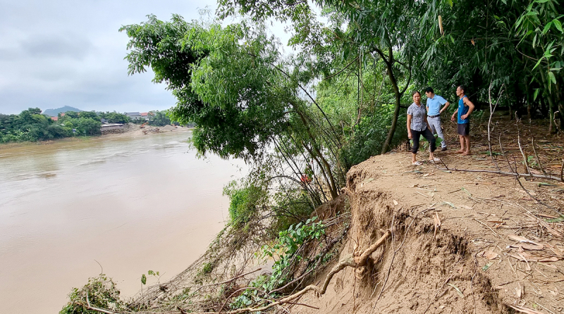 Điển hình như hộ gia đình bà Trần Thị Liên (ở khu 10, thôn Ninh Viên, xã Trị Quận, huyện Phù Ninh). Năm 1989 gia đình bà Liên xin đất và về đây làm nhà ở từ cuối năm 1990. Hằng năm, vào mùa mưa bão cũng xảy ra tình trạng sạt lở nhưng không đáng kể. Tuy nhiên, cách đây 3-4 năm xảy ra vụ sạt lở bờ sông khá lớn vào đến tận cống Cầu Đen nằm ở chân đê và cũng sát ngay nhà bà. Còn những ngày vừa qua, do mưa liên tục cộng với việc xả lũ từ đầu nguồn khiến cho dòng chảy thay đổi dẫn đến khu đất sát nhà ở của gia đình bị sạt lở mạnh. Nhiều cây trồng sát mép sông bị nước cuốn trôi.