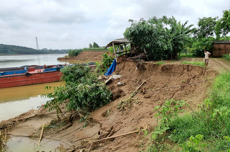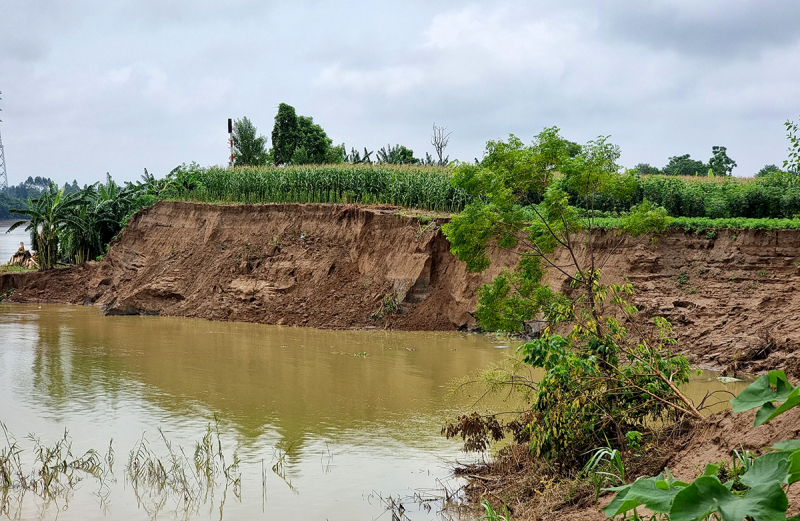 Nước lũ dâng cao, xuất hiện nhiều điểm sạt lở bờ sông ở Phú Thọ