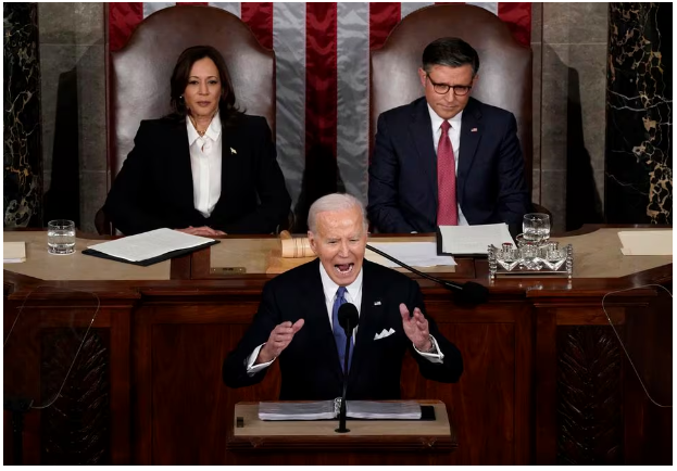 Tổng thống Biden đọc Thông điệp liên bang ngày 3/7/2024 tại Điện Capital. Ảnh: Reuters