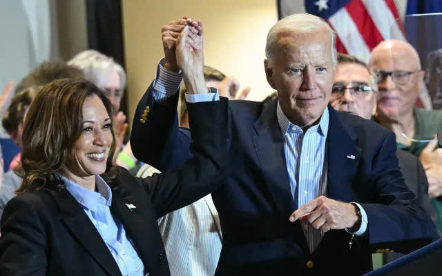 Đây là lần đầu tiên ông Biden và bà Harris cùng xuất hiện tại một sự kiện vận động tranh cử kể từ khi ông từ bỏ cuộc đua giành chức tổng thống.