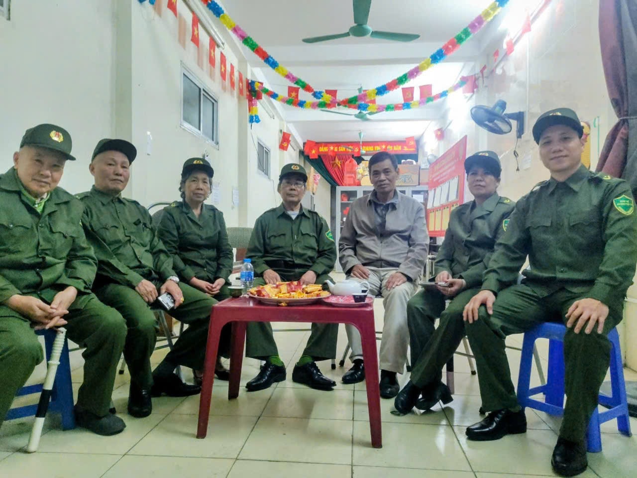 Ông Phạm Văn Hà, Bí thư Chi bộ kiêm Trưởng Ban công tác Mặt trận khu dân cư 24 (phường Ô Chợ Dừa) và các thành viên Tổ công tác bảo đảm an ninh trật tự tại cơ sở làm việc xuyên Tết Nguyên đán Bính Ngọ vừa qua.
