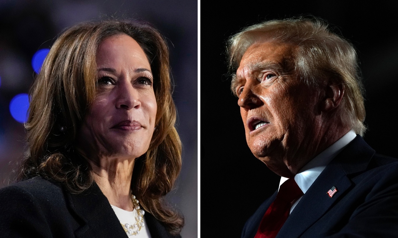 Cựu tổng thống Mỹ Trump (phải) và bà Harris. Ảnh: AP