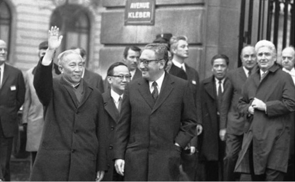 Henry A. Kissinger and Lê Đức Thọ after the signing of the Paris Agreement