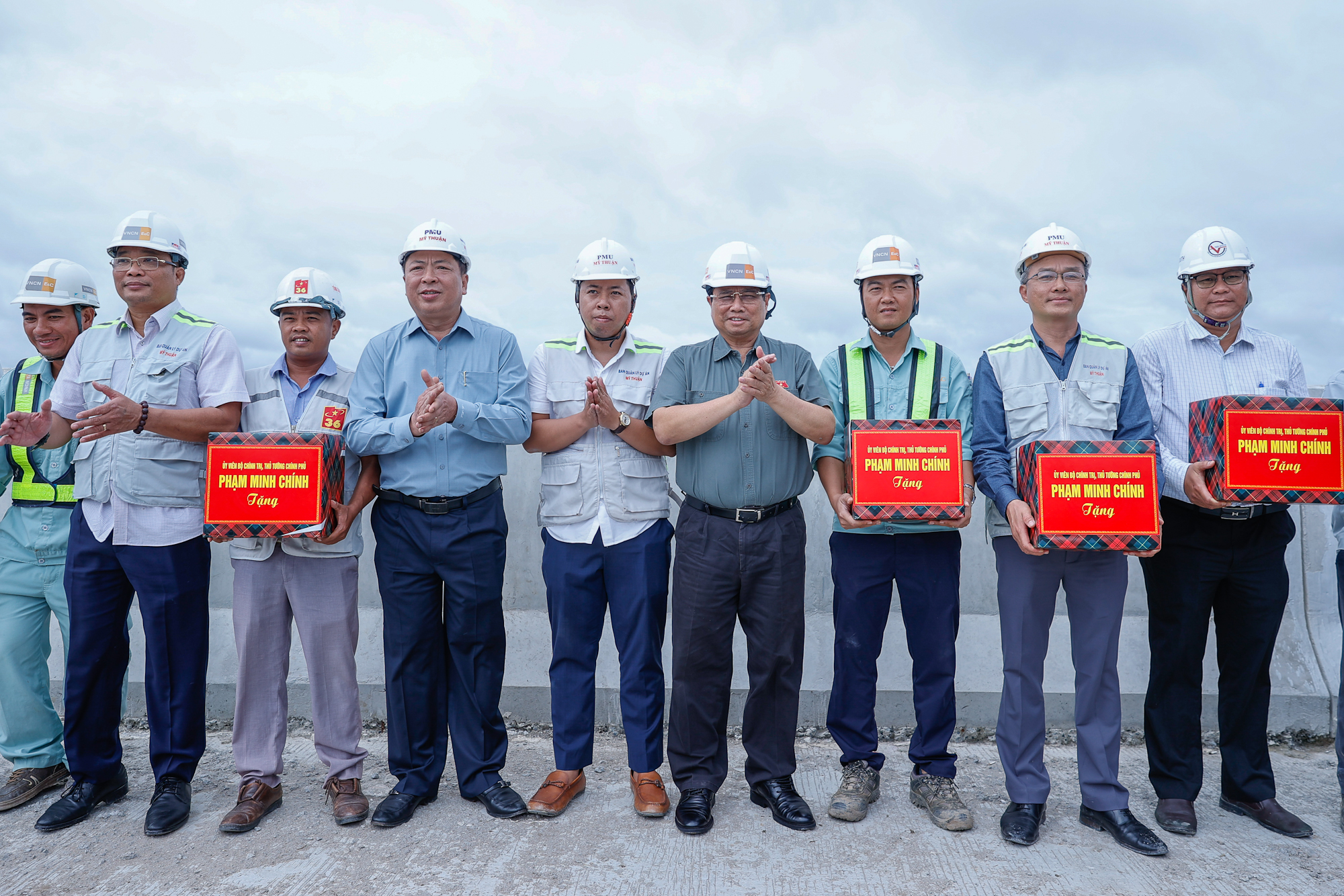 Thủ tướng thăm hỏi, động viên và tặng quà các cán bộ, công nhân và bà con khu vực các dự án cao tốc trong vùng