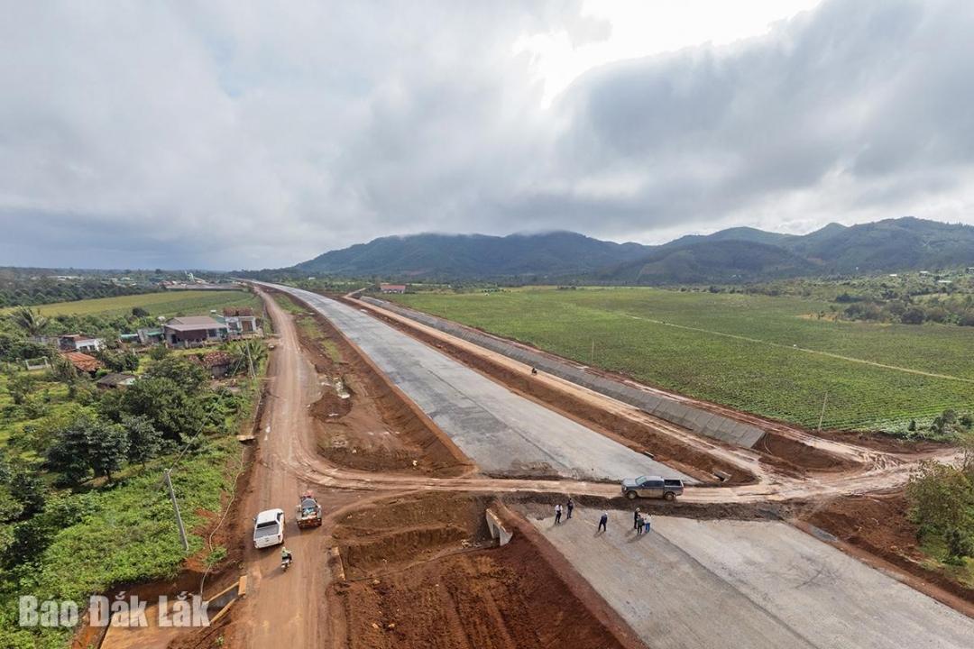 Thi công cao tốc Khánh Hòa - Buôn Ma Thuột đoạn qua huyện Krông Pắc. (Ảnh: Nguyễn Gia)