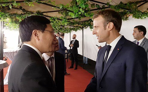 Phó Thủ tướng, Bộ trưởng Ngoại giao Phạm Bình Minh gặp Tổng thống Pháp Emmanuel Macron
