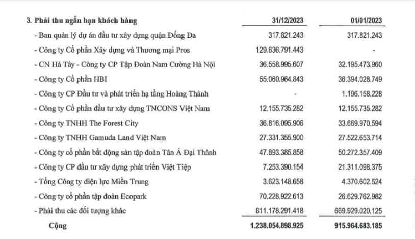 Báo cáo cũng cho thấy, lưu chuyển dòng tiền kinh doanh trong năm 2023 bị âm tới 143 tỷ đồng, chủ yếu do tăng các khoản phải thu và trả tiền lãi vay.