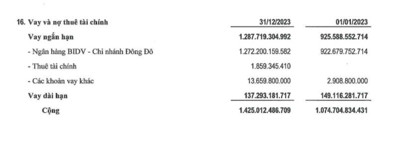 Báo cáo cho thấy, công ty tiếp tục gia tăng vay nợ ngân hàng, đang vay nợ lớn nhất tại Ngân hàng BIDV- Chi nhánh Đông Đô với dư nợ hơn 1.272 tỷ đồng.