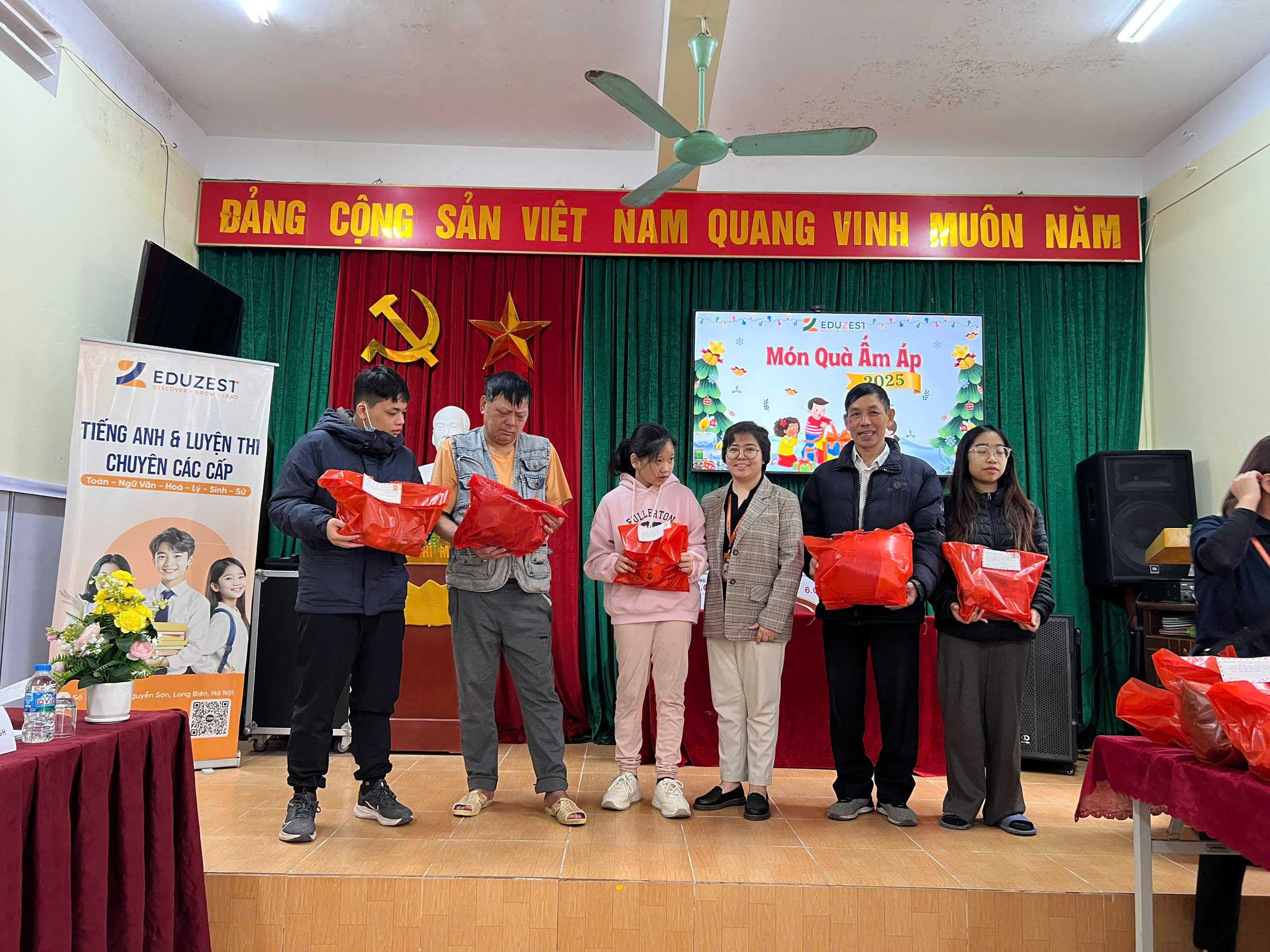 Món quà tuy nhỏ gồm 50 suất hiện vật gồm dụng cụ học tập, quần áo, khăn len… kèm theo các suất học bổng 100% khóa học Tiếng Anh tại Trung tâm EduZest nhưng mang ý nghĩa lan toả cộng đồng tích cực.