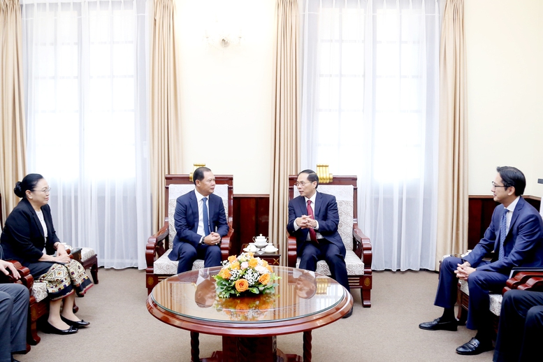Phó Thủ tướng, Bộ trưởng Ngoại giao Bùi Thanh Sơn tiếp Thứ trưởng Bộ Ngoại giao Lào Phoxay Khaykhamphithoune và đoàn công tác - Ảnh: VGP