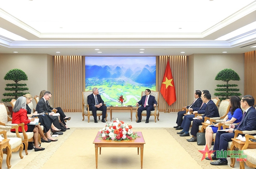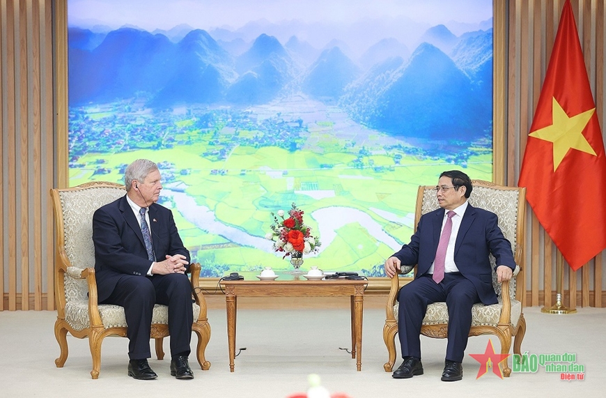 Tại buổi tiếp, Thủ tướng Phạm Minh Chính và Bộ trưởng Thomas Vilsack đã điểm lại và đánh giá cao sự phát triển vượt bậc của quan hệ song phương Việt Nam - Hoa Kỳ thời gian qua, trong đó quan hệ kinh tế - thương mại là trụ cột, là động lực thúc đẩy mạnh mẽ, Hoa Kỳ trở thành đối tác kinh tế hàng đầu của Việt Nam, trên nền tảng hữu nghị, tôn trọng lẫn nhau, đôi bên cùng có lợi.