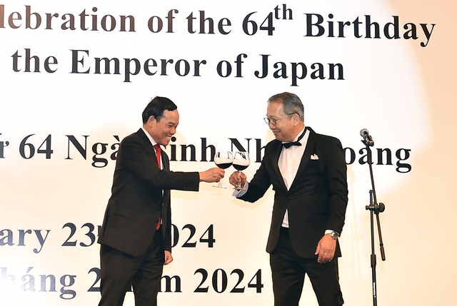 Tối 23/2, tại Hà Nội, Phó Thủ tướng Chính phủ Trần Lưu Quang, Bộ trưởng Bộ Ngoại giao Bùi Thanh Sơn đã đến dự Lễ kỷ niệm 64 năm ngày sinh Nhật Hoàng Naruhito (23/2/1960-23/2/2024), do Đại sứ quán Nhật Bản tại Việt Nam tổ chức.