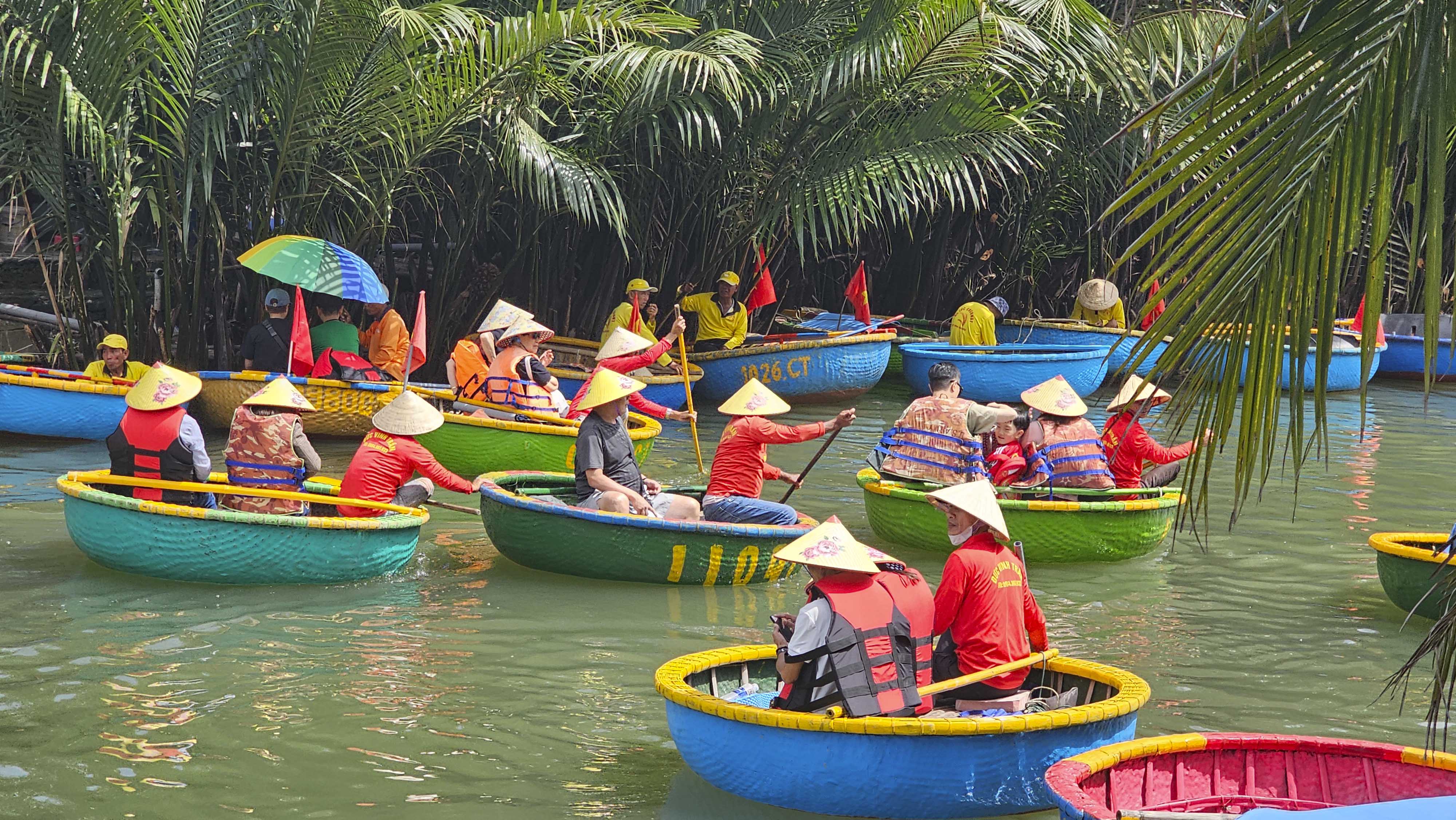 Du khách trong và ngoài nước tham quan trải nghiệm Rừng dừa Bảy Mẫu.