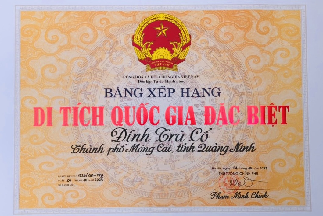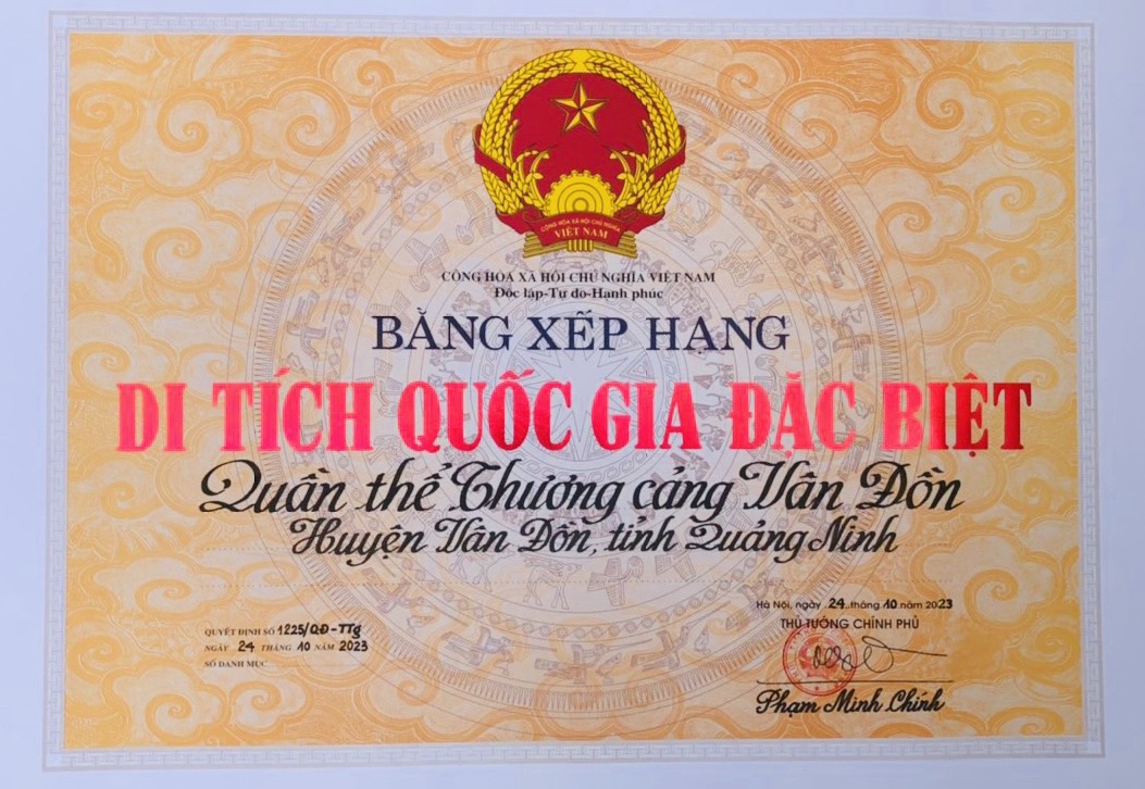 2 di tích được xếp hạng di tích quốc gia đặc biệt đợt này gồm: Di tích lịch sử Quần thể Thương cảng Vân Đồn, Di tích kiến trúc - nghệ thuật đình Trà Cổ.
