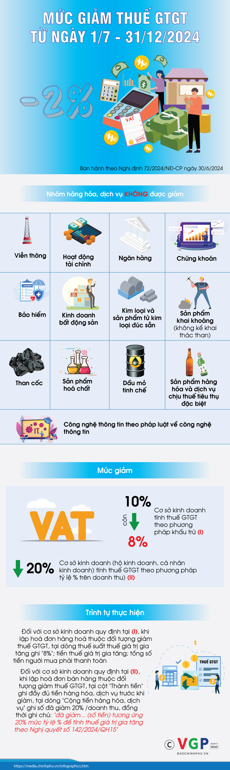 TCVM - Chính phủ vừa ban hành Nghị định số 72/2024/NĐ-CP ngày 30/6/2024 quy định chính sách giảm thuế giá trị gia tăng.