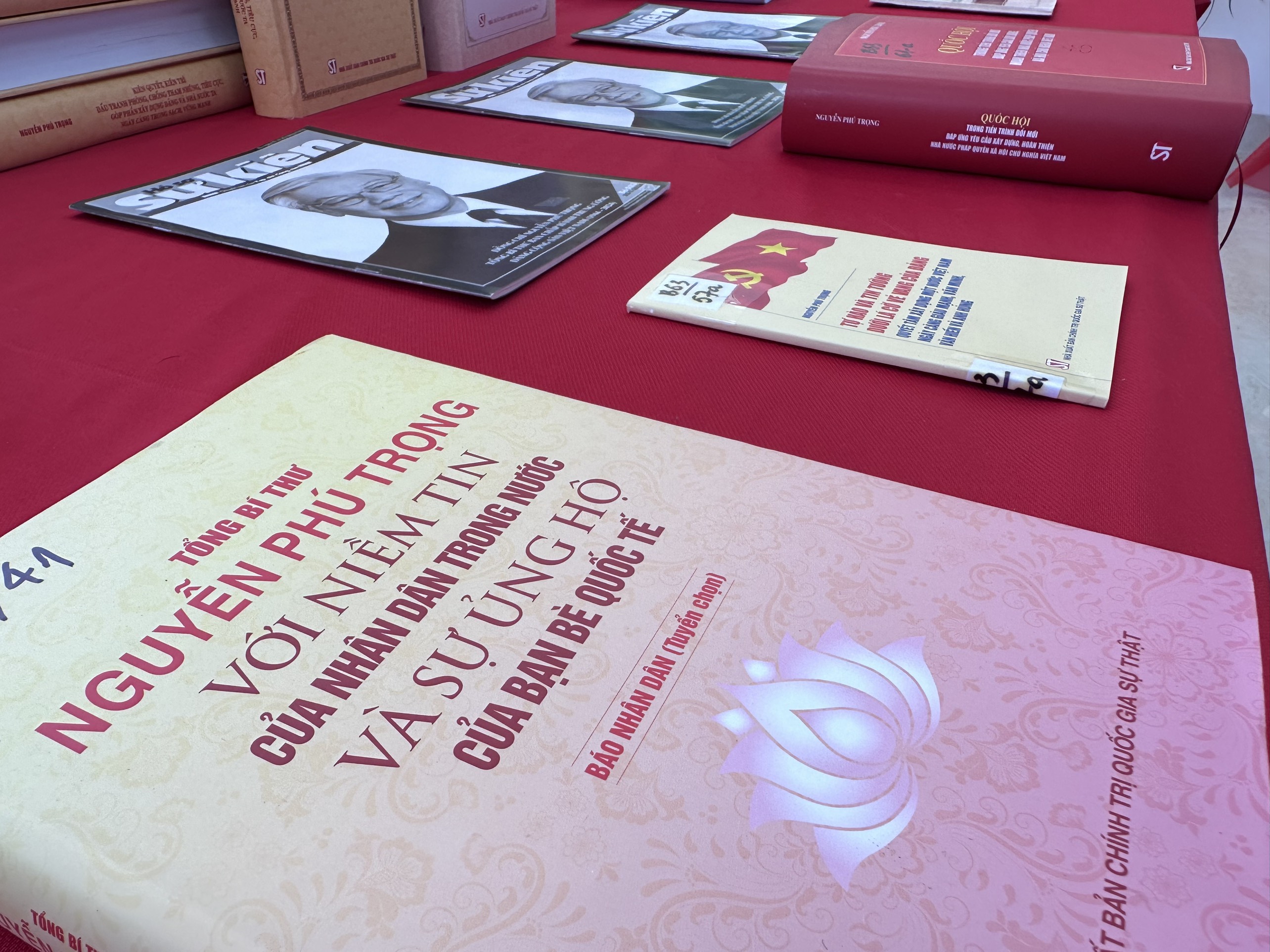 Các đại biểu tham quan, đọc sách của cố Tổng Bí thư Nguyễn Phú Trọng.