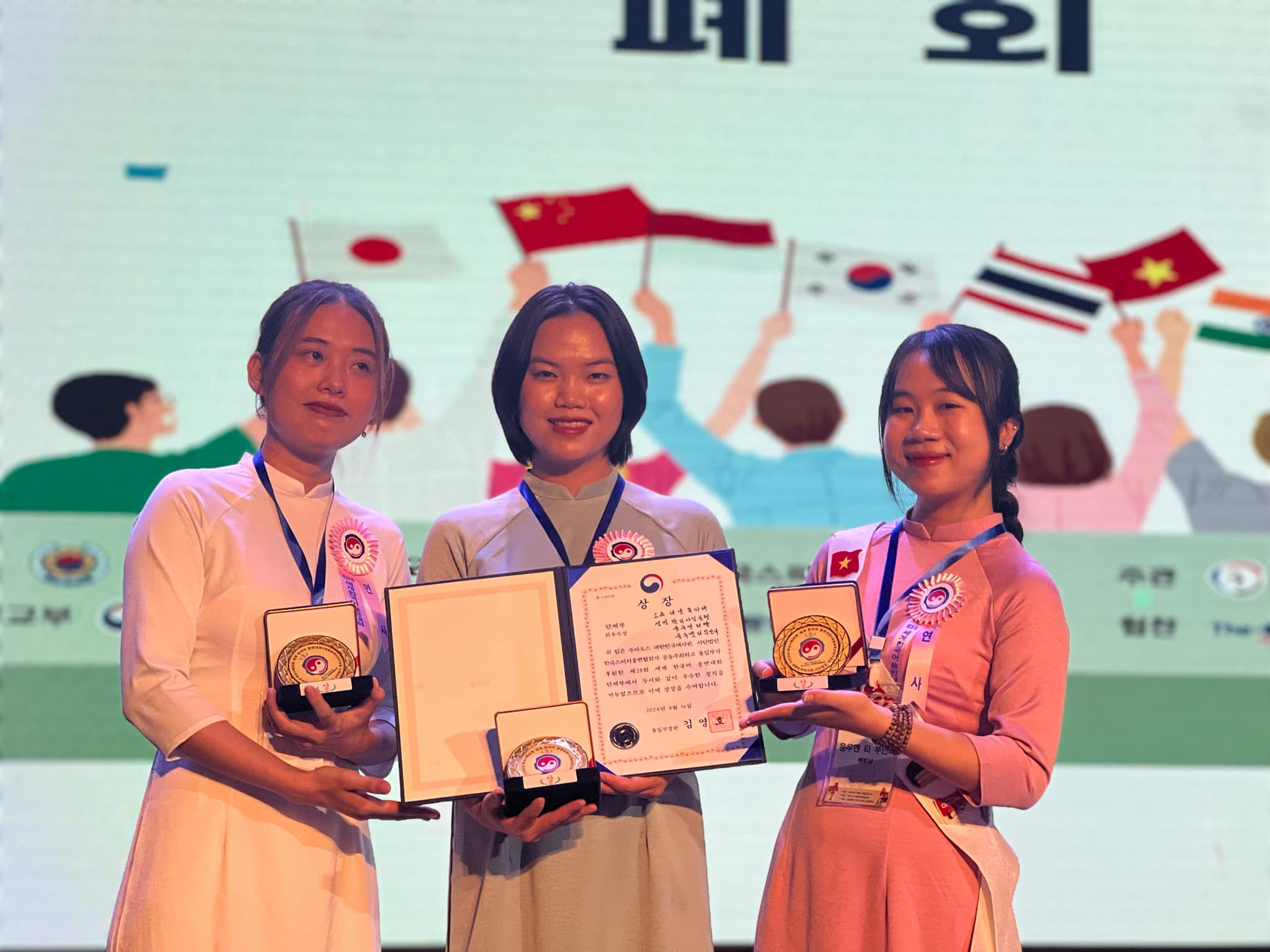 Đây cũng là 3 gương mặt xuất sắc ở cuộc thi "Hùng biện tiếng Hàn K-Speech lần thứ 12" diễn ra tại TP. Hồ Chí Minh vào ngày 1/6. Với giải Nhất hùng biện nhóm và giải Ba hùng biện cá nhân, 3 bạn đã chính thức trở thành đại diện của Việt Nam tham gia dự thi Hùng biện tiếng Hàn thế giới K-Speech lần thứ 28 tại Lào.