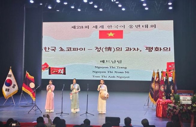 Đại diện của Việt Nam tham gia ở hạng mục nhóm tại cuộc thi năm nay là 3 sinh viên đến từ khoa Ngôn ngữ và Văn hoá Hàn Quốc Đại học Đông Á. Trong đó, Trần Thị Ánh Nguyệt và Nguyễn Thị Trang – cùng là sinh viên năm 3 và Nguyễn Thị Xuân Ni – sinh viên năm 2.