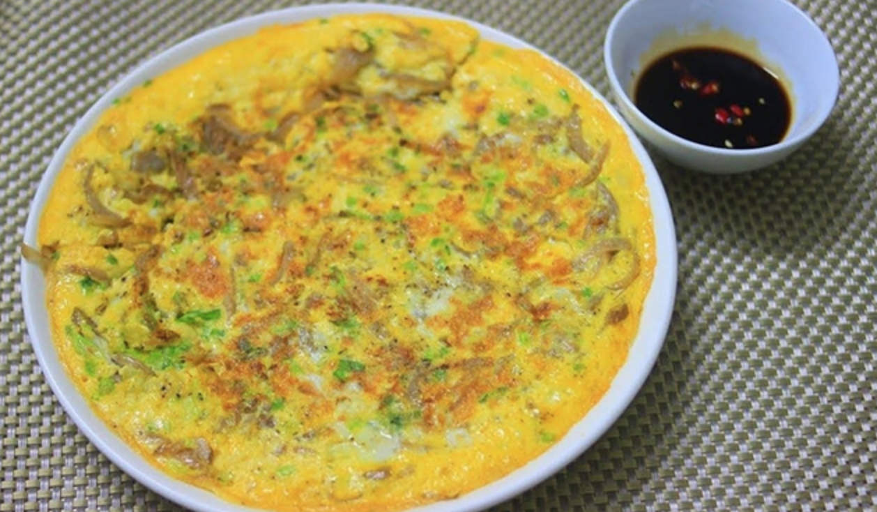 Apart from being eaten with rice porridge and fried with pork belly, 'xá bấu' can be cut into pieces to fry with eggs to become another tasty dish.