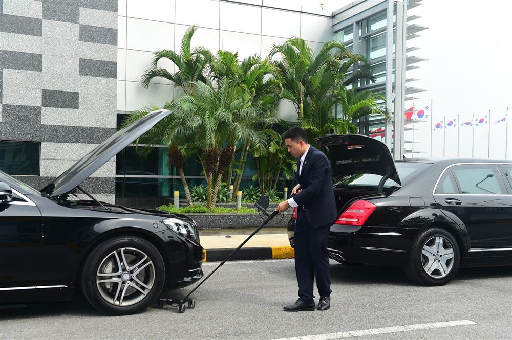 Kiểm tra an ninh phương tiện ra, vào khu vực bảo vệ. Ảnh: Bộ Công an